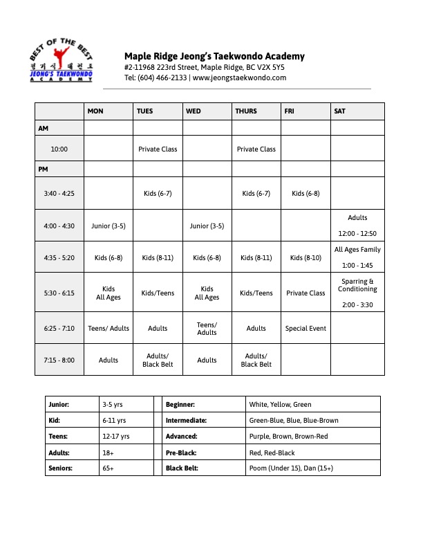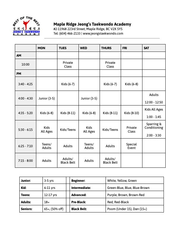 CLASS SCHEDULE